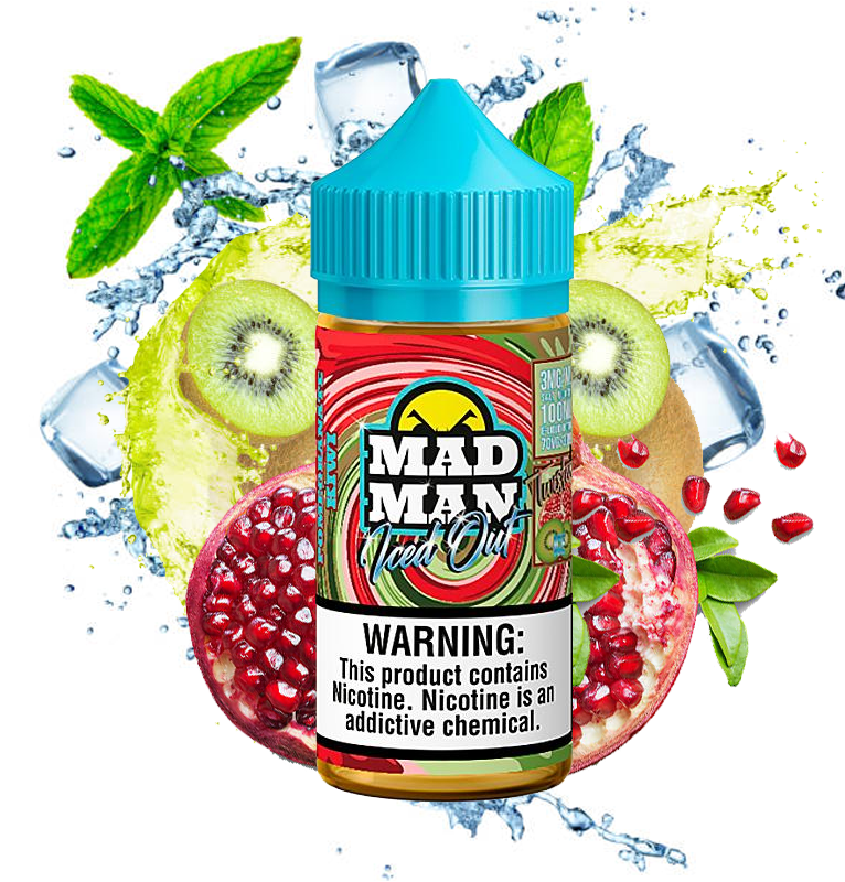 El líquido para vaporizador Mad Man Granada Kiwi Hielo es una deliciosa combinación entre granada, kiwi con el característico golpe de mentol de «Iced Out»