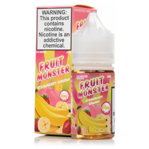 Salt Fruit Monster Strawberry Banana Frutilla Plátano es una deliciosa mezcla de Frutilla y banana con un golpe de mentol. Al principio predomina una Mezcla magnífica de berries como frutales, y banana.