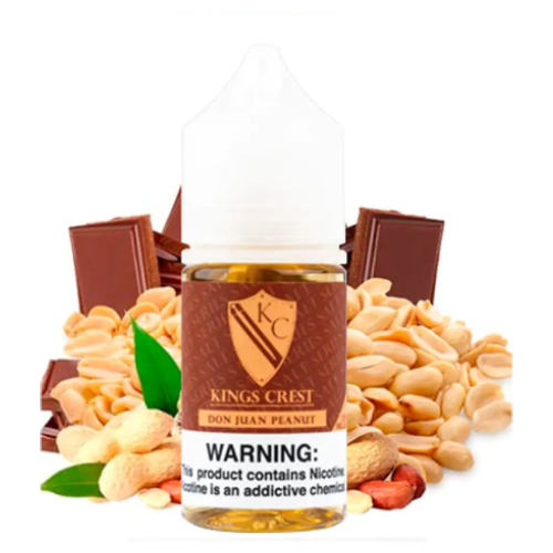 Con nuevo sabor SALT King Crest Don Juan Peanut Chocolate Maní podrás inhalar y disfrutar en tu paladar una exquisita mezcla de sabores primarios Chocolate, maní.