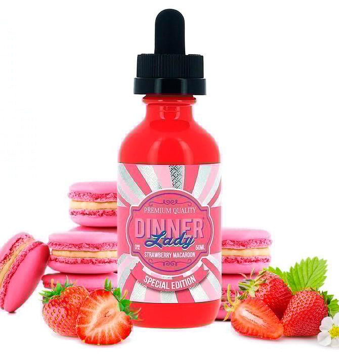 El líquido Dinner Lady Strawberry Macaroon es con un exquisito sabor a Macaroon de Frutilla, con notas de crema, almendras y un pizca de coco, una delicia para disfrutar en tu cigarrillo electrónico. Presentación de 50-60ml y disponible en 0,3 y 6 mg de Nico.